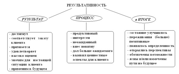 получаемой помощи может оцениваться как клиентом, так и консультантом. При этом мы выделяем такие составляющие: Результативность