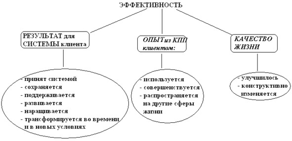 осуществления КПП может быть оценена лишь по прошествии некоторого времени, нужного клиенту для управления своей жизненной ситуацией, изменения в которой были запущены в ходе консультирования. Эффективность