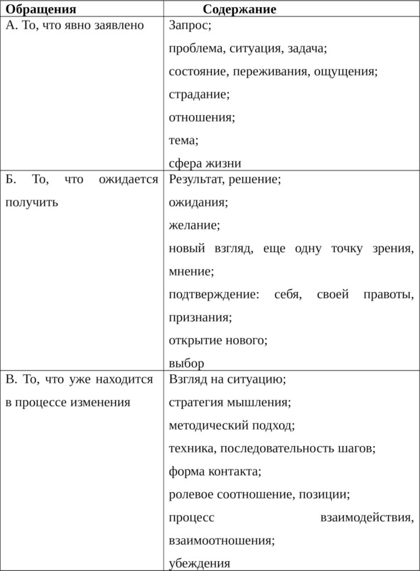 Можно в самом общем виде выделить три вида актуальных обращений к психологу за помощью. Они приведены в таблице 1.