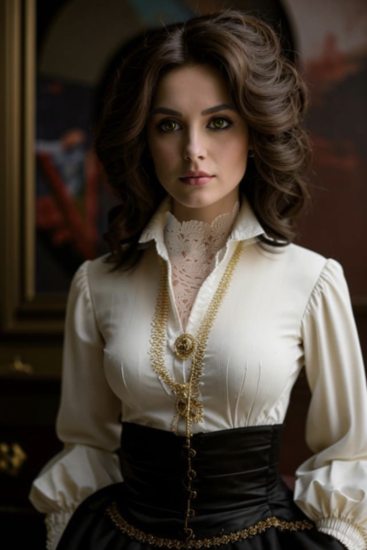 Леди Блейнвир действительно удивила. Белая блузка с высоким кружевным воротником, чёрная юбка в пол, перехваченная поясом на талии. Одежда, которая закрывала всё и даже больше. Волосы были уложены в строгую, но элегантную причёску. Леди была присуща аристократическая бледность лица, тонкие черты. Её экзотическое происхождение выдавали лишь глаза миндалевидной формы и очень большие, необычного медового цвета в обрамлении длинных ресниц. «Среди дальних предков леди явно наследил кто-то очень глазастый», – подумал Нил.