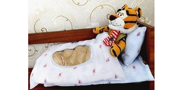Мой Тигрёнок рыжий, полосатый. Он меня обнимет мягкой лапой, И уснём мы на одной подушке, Он моя любимая игрушка! Если ночью вдруг прижму ему бочок, Он мне даже песенку споёт. Вот!