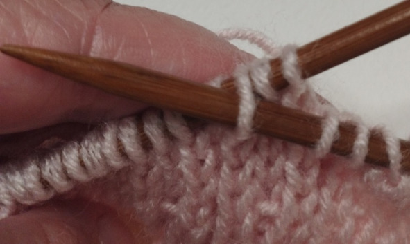5 ряд: кромочная, 9 лицевых, 1 изнаночная, 4 лицевых, прибавка из протяжки, 2 лицевых, прибавка из протяжки, 1 лицевая, 1 изнаночная, 4 лицевых, 1 изнаночная, 1 лицевая, прибавка из протяжки, 2 лицевых, прибавка из протяжки, 23 лицевых, прибавка из протяжки, 2 лицевых, прибавка из протяжки, 1 лицевая, 1 изнаночная, 4 лицевых, 1 изнаночная, 1 лицевая, прибавка из протяжки, 2 лицевых, прибавка из протяжки, 4 лицевых, 1 изнаночная, 9 лицевых, 1 изнаночная