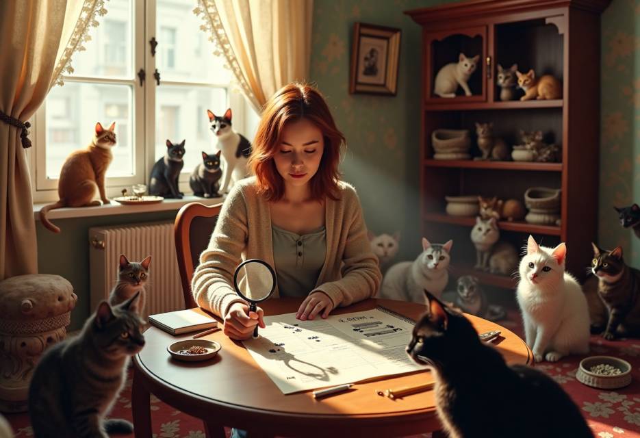 Кормление превратилось в настоящий квест – каждому коту полагалась своя еда согласно записям в тетради. Шерлок предпочитал паштет из телятины, Багира обожала рыбу, а привередливая Принцесса ела только корм премиум-класса с добавлением витаминов.