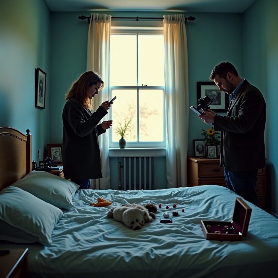 Тем временем Морозова приступила к техническому осмотру квартиры. Включив ультрафиолетовую лампу, она методично обследовала поверхности в поисках биологических следов. В большинстве комнат все было чисто, но в спальне картина оказалась иной.