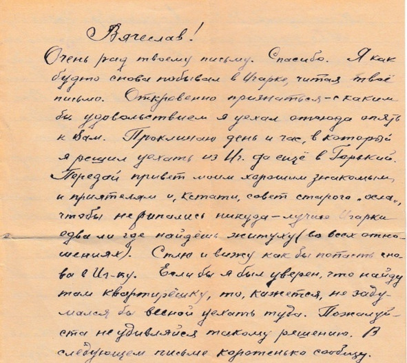 Фрагмент письма В. И. Соколова В. Г. Шурдукову. 1952 г. Архив В. Г. Григорьева