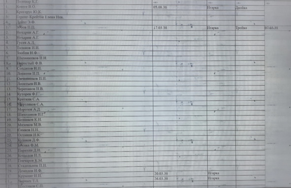 Из этой группы двое – поляк, рабочий совхоза «Полярный» Франц Павлович Грудецкий и кучер совхоза Ефим Семёнович Барковский вывезены из Игарки. Грудецкий расстрелян в Красноярске 15 октября 1938 г., а Е. С. Барковский – 20 апреля 1938 г. в г. Канске. Все остальные 23 человека расстреляны в Игарке в один день – 20 апреля 1938 года. Трудно себе даже представить, как в небольшой Игарке можно было провести массовый расстрел людей, не имея для этого специального помещения. Все репрессированные, которых я упоминала, были реабилитированы.