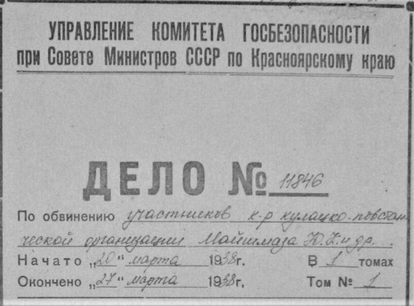Дело Ю. К. Майшмаза начато 20 марта 1938 г., окончено 27 марта. Копия архива УФСБ по запросу Н. Н. Аносова
