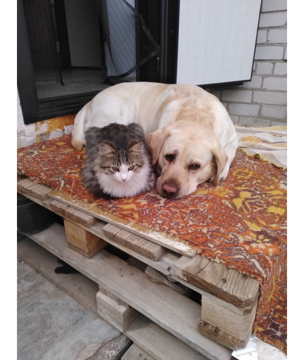 А как моя девочка любила воду, как она любила купаться в озере, любила лес, могла часами гулять со мной и не уходила далеко от меня. Мой кот Симба сразу же принял ее, и у них была настоящая дружба.