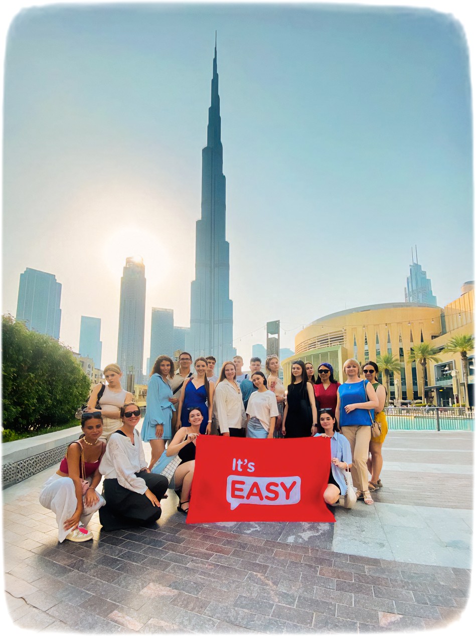 After meeting with the team, we went outside to the Burj Khalifa, where soon a whole performance was shown. It shimmered, fabulous buildings and flowers appeared. It seemed that there was a hole cut in the sky through which we could see a small piece of a fairy tale, and there was a black sky all around. Kostya and Alex decided to buy Turkish ice cream, where the seller put on a show, not giving a horn and deceiving the buyer in every possible way with a long stick in his hands. We all laughed heartily, the boys were smiling so much, they tried to dodge the stick, but in the end the ice cream man slightly grazed their noses, and then he gave them the cone. Then the singing fountain show began. We squeezed in a little closer, everyone took out their cameras and started filming. I couldn’t take my eyes off the water,