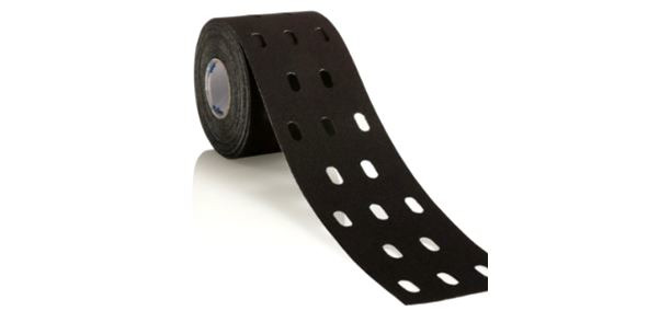 Есть особые перфорированные кинезиотейпы «Панч», которые являются вариацией обычных кинезиотейпов (рис. 6). Этот вид кинезиотейпов обладает большей растяжимостью. Кожа и фасции дополнительно стимулируются в зоне отверстий. Кроме того, эти пластыри более гигиеничны благодаря облегчению дыхания кожи.