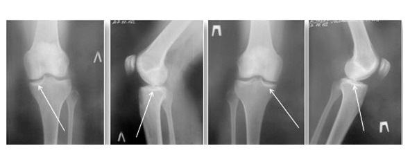 При длительном течение заболевания в связи со снижением физиологической амплитуды движений в коленном суставе развивается атрофия четырехглавой мышцы бедра, что приводит к прогрессированию ортопедических проблем. Среди методов диагностики приоритетное значение имеют методы лучевой диагностики – рентген и магнитно-резонансная томография (МРТ) (рис. 25).