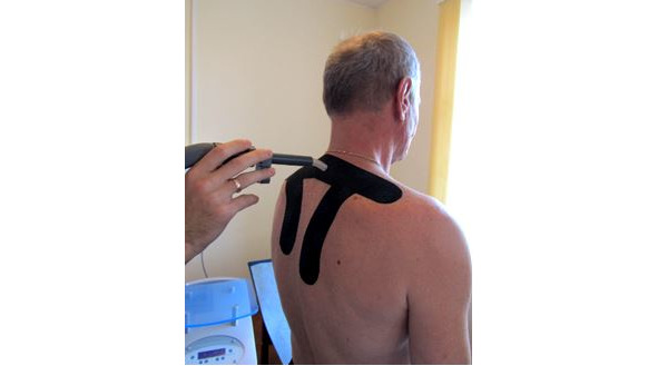 Рисунок 26. Комбинирование кинезиотейпирования шейно-грудного отдела позвоночника и локальной криотерапии