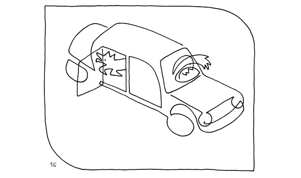 События сна происходят в моем родном городе Кран. Я спускаюсь по Еленовому склону вниз к реке Саве, и на другой стороне дороги я вижу припаркованную машину. Меня удивляет, в каком она плохом состоянии: вот-вот развалится. За рулем находится явно пьяный водитель, он спит, облокотившись на руль. Задняя дверь широко распахнута, я вижу собаку, лежащую на сиденье и громко скулящую от боли. Я думаю «водитель должен что-то сделать, иначе пес у него умрет. Возможно, нужно даже отвезти пса к ветеринару, чтобы усыпить».