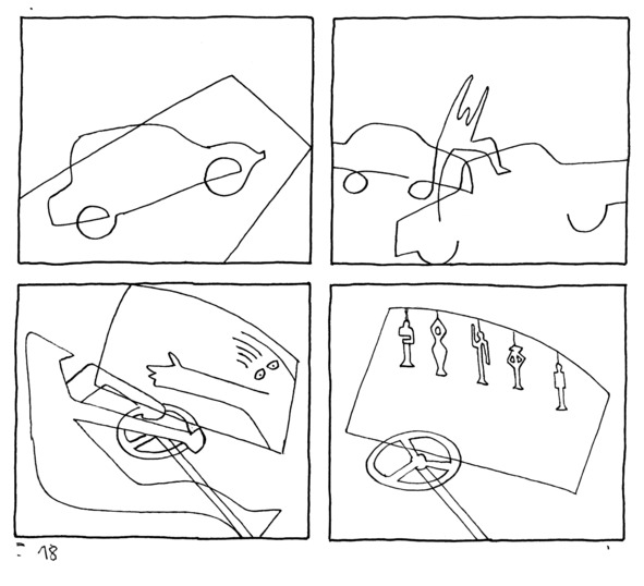 Между человеческой культурой и природой зияет все более широкая пропасть. Во сне она показана разделением между собакой на заднем сиденье и водителем на переднем.