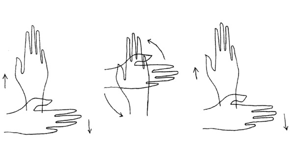 2. Двигайте вертикально расположенную руку вверх, а горизонтально расположенную – вниз.