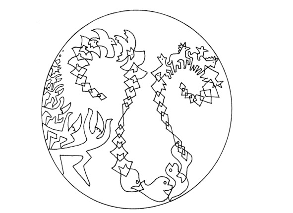 Элементали земли (гномы) работают над преобразованием архетипических форм – в многообразие видов. Космограмма создана для детской книги.