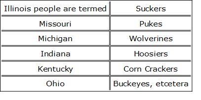 The states have already accommodated each other with nicknames, as per example:—
