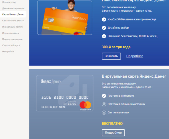 Переходим в раздел «Карты» Яндекс. Денег, выбираем карту и заказываем ее (нажав на кнопку «Заказать»).