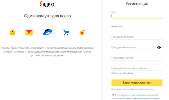 В качестве примера рассмотрим регистрацию на Яндекс. Почте.