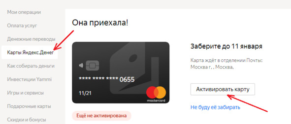 Второй способ: зайти в свой электронный Яндекс. Кошелек, перейти в раздел «Карты Яндекс. Денег» и напротив изображения вашей карты (справа) нажать кнопку «Активировать карту».