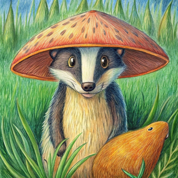 – Пушистая голова с мордочкой в черно-белую полоску выглянула из-под гриба размером с небольшой домик. Это был барсук, и он выглядел явно раздраженным. Его маленькие черные глазки сузились при виде Сантьяго и огромных грибов, окружавших его.