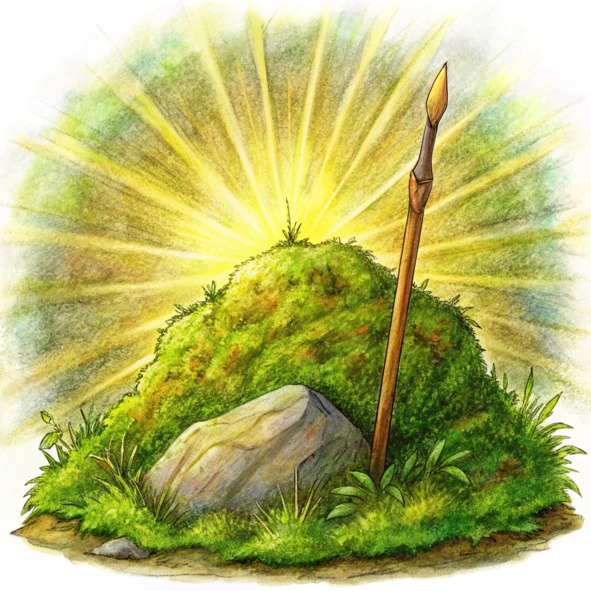 Затем, завернув за поворот, он наткнулся на нечто, совершенно не похожее ни на что, что он когда-либо видел. Перед ним лежала поляна, залитая золотым солнечным светом. Солнечный свет, казалось, проникал до самых костей, прогоняя тени леса. Сама поляна была похожа на миниатюрный мир, место, где воздух гудел от тихой энергии. В центре стоял великолепный дуб, его ветви широко раскинулись, как защитные руки.