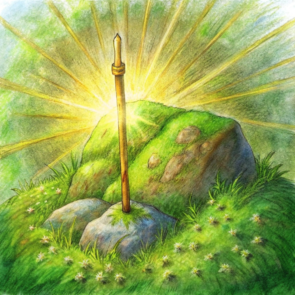 Это была веточка, по крайней мере, так показалось Сантьяго. Но это была не обычная веточка. Она сверкала на солнце, словно сотканная из лунного света и капель росы. Крошечные, замысловатые узоры вились вокруг него, нежные и завораживающие. С одного конца он сужался к острому острию, в то время как другой конец, украшенный завитками золотистых и изумрудных оттенков, казалось, манил Сантьяго вперед.