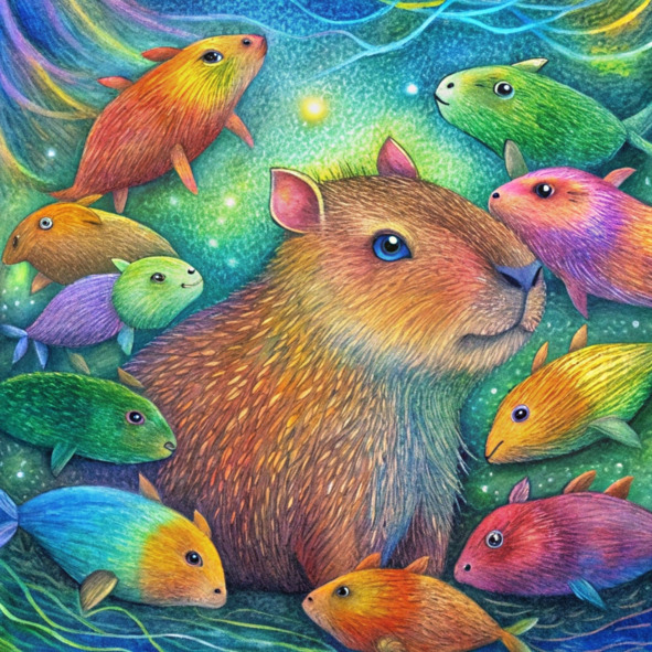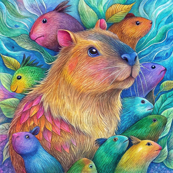 Селена, капибара с мехом цвета густого шоколада, была известна своим авантюрным духом. Она любила исследовать обширную лагуну со своими лучшими друзьями – игривой выдрой по имени Олли и мудрой старой черепахой по имени Шелли.