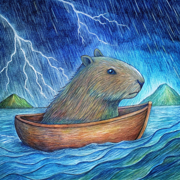 Крошечный плотик Селены мирно дрейфовал по мягким волнам, крошечный островок надежды на бескрайних просторах океана. Она чувствовала тепло солнца и прохладный ветерок на своей шерсти, ее сердце наполнилось осторожным оптимизмом.