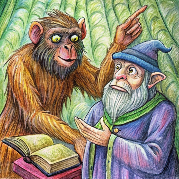 С трепетом и любопытством, клокочущими внутри нее, Элиана осторожно положила светящуюся книгу рядом со спящим волшебником и повернулась к Кики, который теперь качал головой с широко раскрытыми глазами и что-то настойчиво болтал ей на ухо. Тепло от книги, казалось, окутало и его, окутав неземным сиянием, от которого по пещере разлилась рябь энергии. Элиана больше не была одна, и древние тайны джунглей, казалось, манили их дальше, в неизведанный мир.