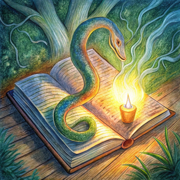 Элиана замерла, вглядываясь в направлении звука. Длинная, извилистая фигура медленно двигалась, проявляя себя с каждым скользящим движением. Питон. Изящная изумрудная красавица с глазами, холодными и настороженными, как обсидиановый мрамор.