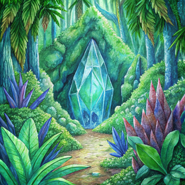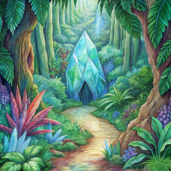 Воздух джунглей звенел от ритма жизни. Солнечный свет пробивался сквозь листву, рисуя узоры на поросшей мхом земле. Элиана, сжимая в руках странную книгу, исследовала скрытую пещеру. Кристаллы нашептывали секреты в тишине, их мерцающие отражения танцевали в ее глазах.