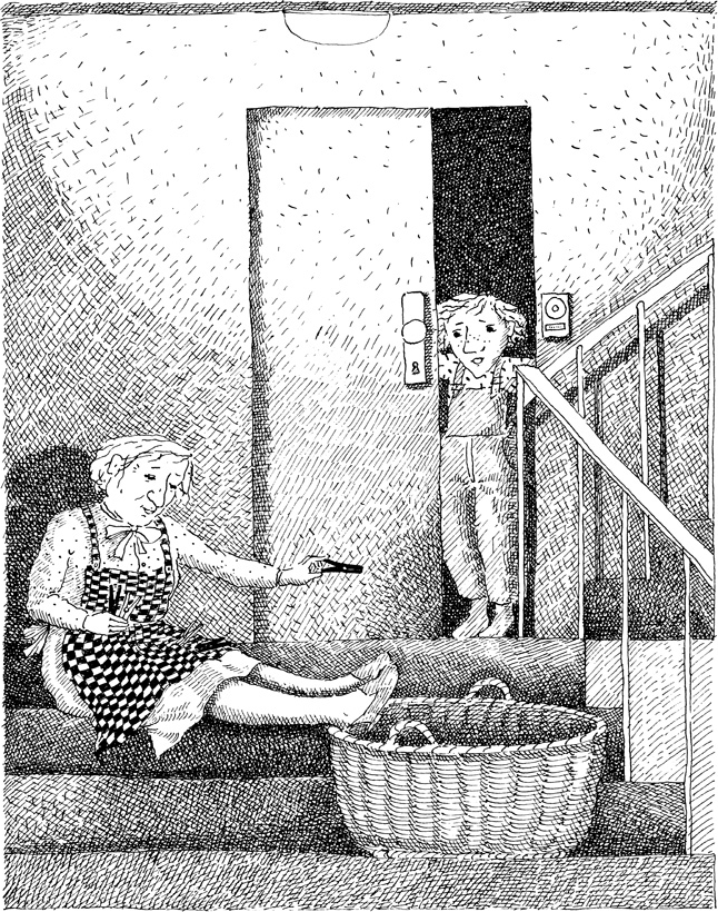 – Ну слава богу, – говорит бабушка. Она встаёт кряхтя и берёт корзину для белья и прищепки. – Тут на лестнице сквозит. И я всё время проигрываю.