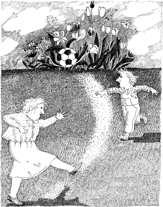 – Да ты что, бабушка! – кричит Фридер и улыбается во весь рот, а потом быстро бежит к клумбе. Три тюльпана поникли. Но, к счастью, не сломались. – Ну ты даёшь! – говорит Фридер и приносит мяч.