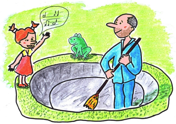 – У нас все хорошо. Мы с Катей возвращались из бани мимо пруда, на дно опять упала лягушка, что делать?