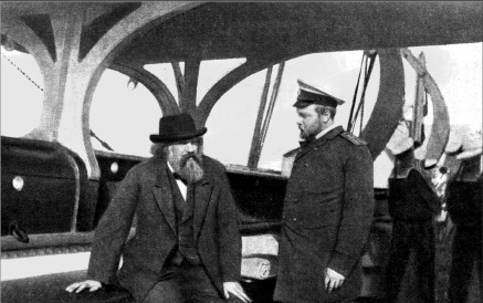 Д. И. Менделеев с сыном Владимиром на палубе «Память Азова». 1890 г.