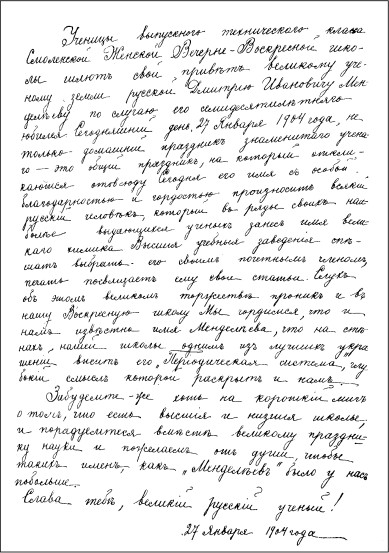 Адрес Д. И. Менделееву в день его семидесятилетнего юбилея от Смоленской женской вечерней воскресной школы