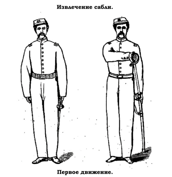 Порядок извлечения и вкладывания сабли должен соответствовать тому, что изложено в руководстве по сабле для офицеров в пешем строю.