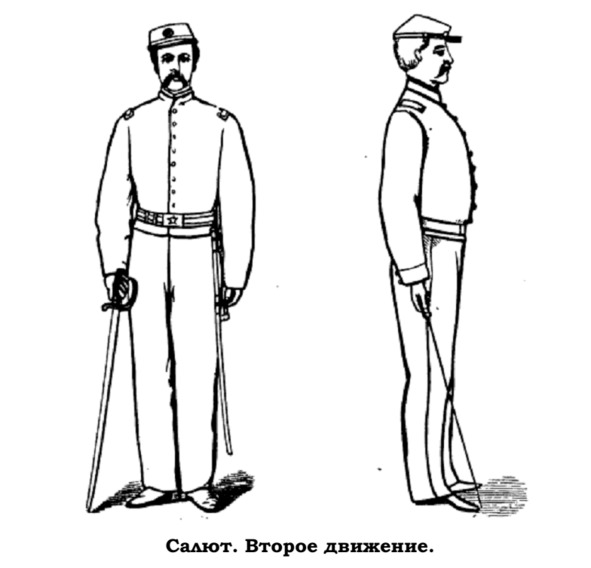 Многие офицеры применяют это положение к себе и считают, что они должны носить сабли так. Это ошибка. Правило предназначено для офицеров кавалерии и артиллерии и служит приданию однообразия офицерам этих войск, когда они находятся на ногах, но не относится к офицерам других частей.