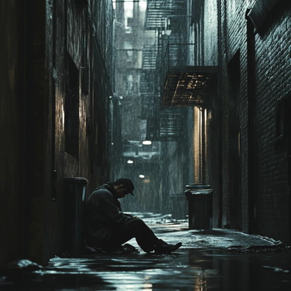 Холод.Страх.Голод.Крах.На тёмной чуждой улице,В переулке чужом,Нищий сидитПод чьим-то окном.В окне горит свет,И слышен чей-то смех,Сидит мужик и думает,Каков же его грех.Холодные каплиПо крыше стучат,А людям с мира иногоНе страшен и град.Дрожь пробираетМужика изнутри,Время душу сковалоИ не спускает с цепи.Живот вяло урчит,Голод тело терзает,Но терпит мужик,Ошибки свои понимает.И он был счастлив,И он раньше смеялся,Но всё изменилось,Когда один он остался.Пришло одиночество,Прокопало в нём яму.В руках слабых держитФото старого раму.Чем он дорожит?Зачем вообще живёт?Из проходящих мимоЕго никто не поймёт.Вспоминая прошлое,Он чувствует тепло.Капли поют колыбель,В сон провожая его.На залитой светом улице,В переулке родномСобачка промокшая,Вплотную прижавшись,Нашла себе новый дом.