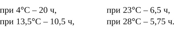 Как и у всего живого у них, естественно, имеет место половой процесс, который заключается в том, что обычно две внешне одинаковые, реже различные клетки сближаются и сливаются вместе – копулируют. При этом их содержимое объединяется, а затем внутри клетки образуется сумка – аск – особый орган спороношения, в котором развиваются аскоспоры37 (обычно по 8 спор в сумке). При благоприятных условиях дрожжи интенсивно размножаются почкованием, а при неблагоприятных гибнут, оставляя весьма устойчивые к воздействию окружающей среды споры. При почковании сбоку дрожжевой клетки вначале появляется бородавочка-почка. Она получает часть ядра и аскоспор от материнской клетки, быстро растёт, отделяется от материнской клетки и начинает жить как самостоятельный грибок. При некоторых условиях дочерняя почка, ещё не отделившись от материнской, образует другие почки, а те, в свою очередь, новые. В результате на поверхности бродильной жидкости возникает гладкая плёнка белого или бежевого цвета из сцепленных между собой грибков – дрожжевая колония. Время достижения дрожжевым грибком половой зрелости зависит от температуры и составляет [7]: