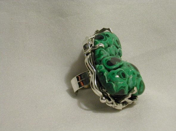 Кольцо обрело долгожданный вид,зеленое поле кружков и полосокпылает на солнце мой друг- малахит,в палитре своей он игрив и бросок.Зажмуришь глаза, а огонь не уйдет,настолько хорош он в оправе богатой,и взгляд твой в объятия нежно беретпростой минерал, чародей полосатый.А родом он с древних скалистых гор,и в сказах Бажова воспет многократно,прекрасный, суровый Уральский просторзовет в эту сказку вернуться обратно.