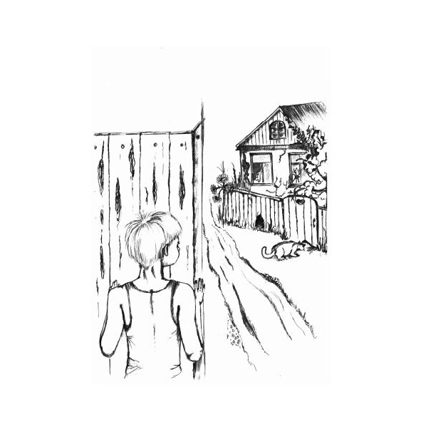 «Ага! – подумал юный охотник. – Ну, теперь-то ты попался». Рядом в заборе была наполовину выломана доска. Никита скользнул в дыру и, стараясь не шуршать, пополз вперёд. Подкравшись, протянул руки и уже хотел схватить кота за пушистый хвост, как вдруг в доме послышались шаги. В глубине веранды распахнулась дверь и в проёме возникла чёрная фигура.