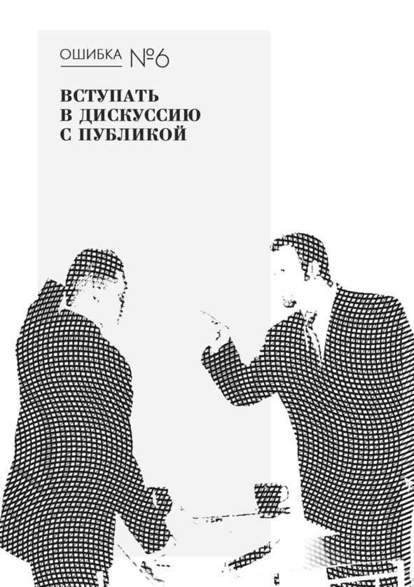 Стишки-пирожкиА сейчас мы разберем ошибку, которая свойственна всем начинающим спикерам, а порой и некоторым очень опытным. Ее совершали абсолютно все: и я, и мои коллеги, и мои клиенты. Но самое главное, что обойти ее очень сложно. Сейчас объясню почему. , который начинает вступать с вами в дискуссию. Он перебивает, высказывает свою точку зрения. Как показывает опыт, на любом успешном семинаре такой человек есть всегда. Самая первая реакция, которую мы начинаем демонстрировать публике, – это желание усмирить такого человека, доказать, что мы правы. В итоге мы тратим время слушателей (а это может быть зал в 50, 100, 300 человек) и начинаем спорить с этим человеком, доказывать свою правоту. А что в итоге? Если вы являетесь экспертом в какой-либо области, то рано или поздно на вашем выступлении появляется «человек-дерьмо»