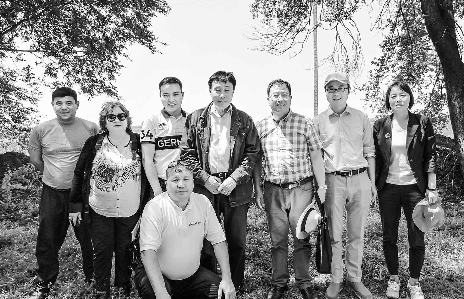 Чжан Чжэнмао (третий справа) и другие специалисты благодаря сотрудничеству в рамках агротехнологического демонстрационного парка наладили тесные отношения с экспертами Казахского национального аграрного университета