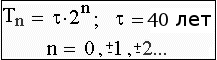Средняя длительность инновационных циклов, так же как продолжительность глобальных исторических периодов Мир-системы в нашей теории, выражается через фундаментальную константу исторического времени по одной и той же формуле: