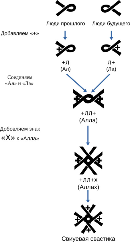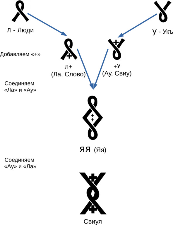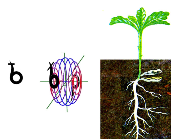Например, процесс прорастания корешка из «семени» обозначается символом «Рекуче», и дальнейшее разрастание «корней» обозначается знаком «Ра» (Солнце Речи Реченьки, т. е. Реки от Речки из единого центра).