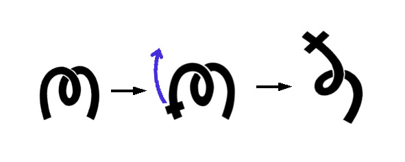 Знак «Герьвь» образуется путём подъёма вверх к небесам правой ноги в знаке «ам».