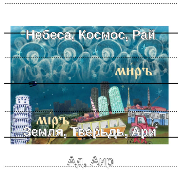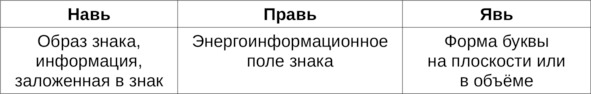 Изучая нашу азбуку, человек познаёт устройство Яви (явного пространства), Нави («тонкоматериального» пространства – духовного Мира) и уровня Прави (срединного, единяющего пространства).