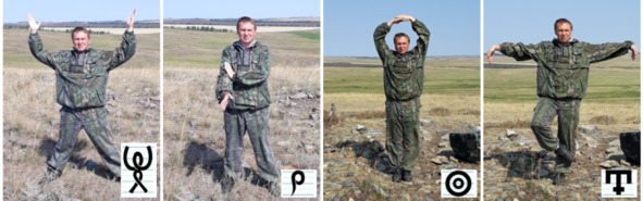 Ещё один интересный аспект заключается в том, что знаки можно выписывать в пространстве своим телом (позициями, асанами) или просто пальцами («мудрами»). И речь (слова) можно передавать в виде грамотных движений тела, т.е. в виде танца. Этот аспект заложен, например, в язык движений Деванагари. Любое движение есть просто смена, череда статических позиций. И поэтому при помощи наших букв (волшебных форм) можно описывать огромное количество разнообразных психофизических упражнений для развития человека и его возможностей. Что мы и изучаем на наших практических занятиях.